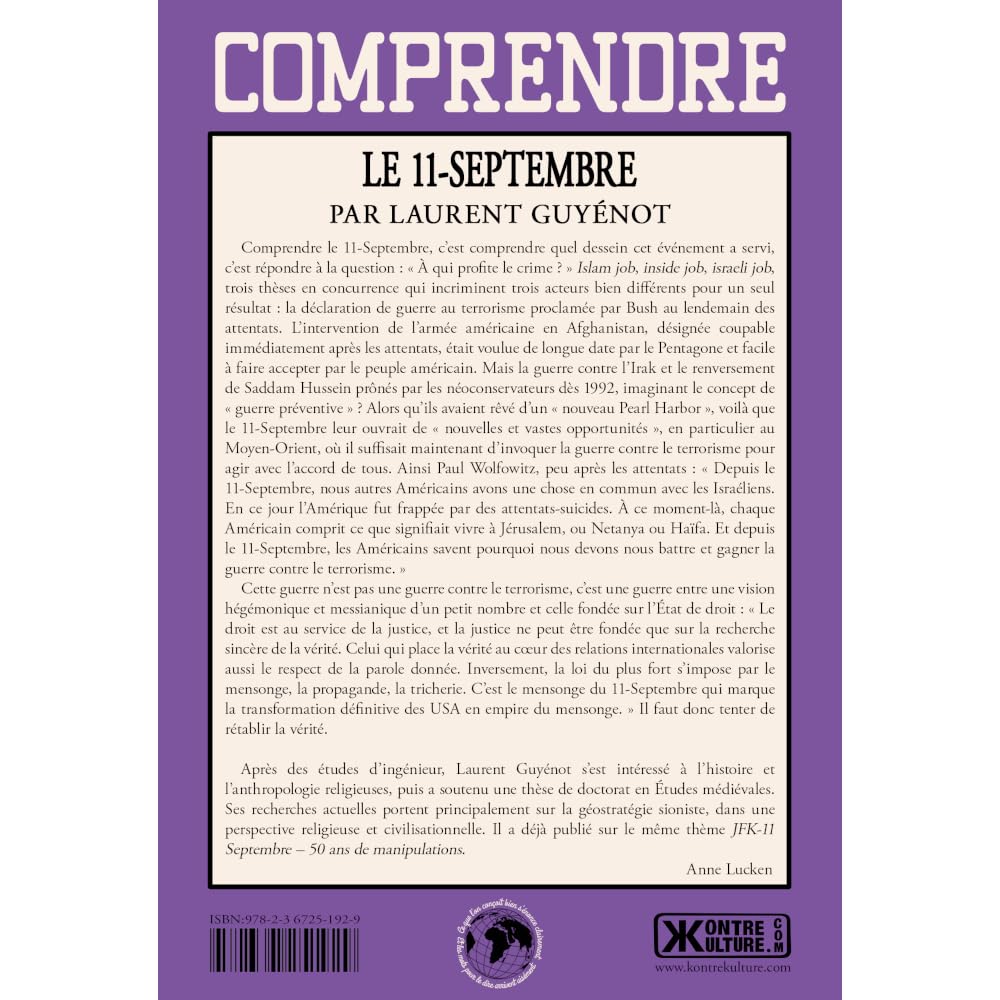 « Comprendre le 11-Septembre » est bien plus qu’un simple livre d’histoire ; c’est un appel à l’introspection et à une réévaluation des faits souvent masqués par des récits officiels. Laurent Guyénot offre un examen méticuleux des tenants et aboutissants de cette date charnière, incitant les lecteurs à plonger au cœur des vérités plus profondes et à remettre en question l’ordre établi. Une lecture essentielle pour quiconque souhaite appréhender les réalités complexes de notre monde en changement.